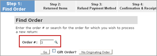 The steps below illustrate how to process a return when launching the Four-Step Return Wizard from with the Back Office.
