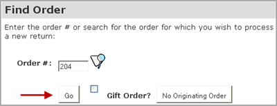 If the order was a gift, check the Gift Order? option. This generates a return receipt that doesn't include any pricing. Click Go to continue processing the return.