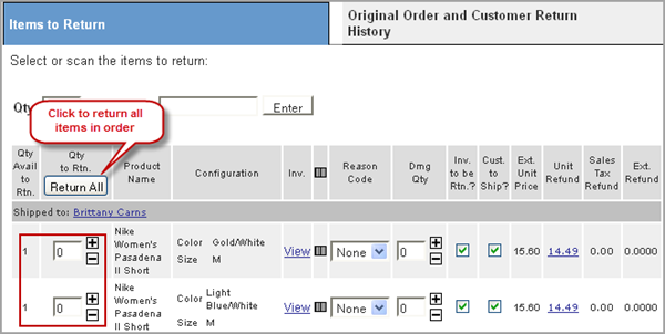 Click the (+) button to adjust the quantity being returned under the Qty to Rtn. column or if all items are being returned, click the Return All button.