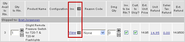 Click on the View link to check the inventory level of the item as needed. If unable to scan the barcode, click on the