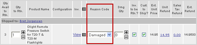 Note: Reason code requirements and list are setup in System Admin > Technical Configuration > Return Reason Codes table. |