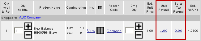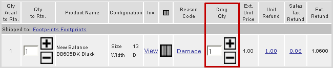 If the item being returned is damaged, click the (+) button to adjust the quantity under the Dmg Qty column. Marking the product damaged, prevents the stock inventory from being increased when the return is complete.