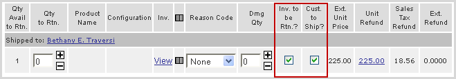 The two options work as follows: Inv. to be Rtn? = When checked, it identifies if the merchandise is to be sent back to the warehouse. Some industries such as plants and food,can uncheck this so no RMA is generated. Cust to Ship? = When checked, a shipment is created that is used to track the return of merchandise. If you do not want shipments created for returns, uncheck this option.