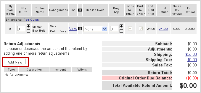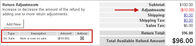 An adjustment can be made to the amount being refunded by clicking the Add New button.