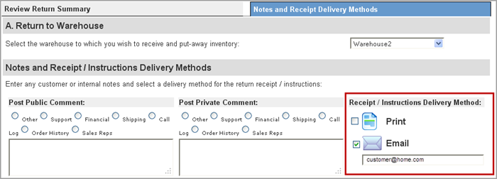 Check the box of the method you want to use to deliver the customer instructions. Enter an email address in the space provided.