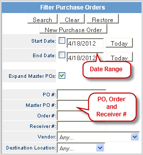 In the Purchase Order Manager, search for the PO to receive the items associated with the order.