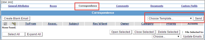 Click on Correspondence tab to access the Choose Template drop-down list.