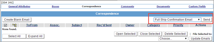 Select either Full or Partial Ship Confirmation Email (as appropriate) and click on the send button. The Ship Date and tracking information are automatically populated in the email.