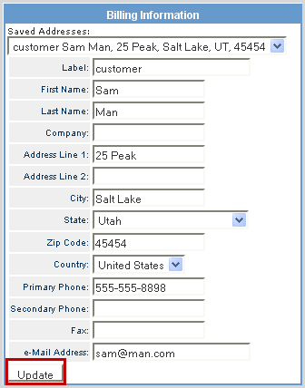 On the Billing page of the Order Manager, any of the fields in the Billing Information box can be edited directly. Make the necessary changes and click Update.