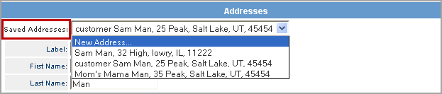 To add a new address to the system, click on the Saved Addresses drop-down and select the New Address option.