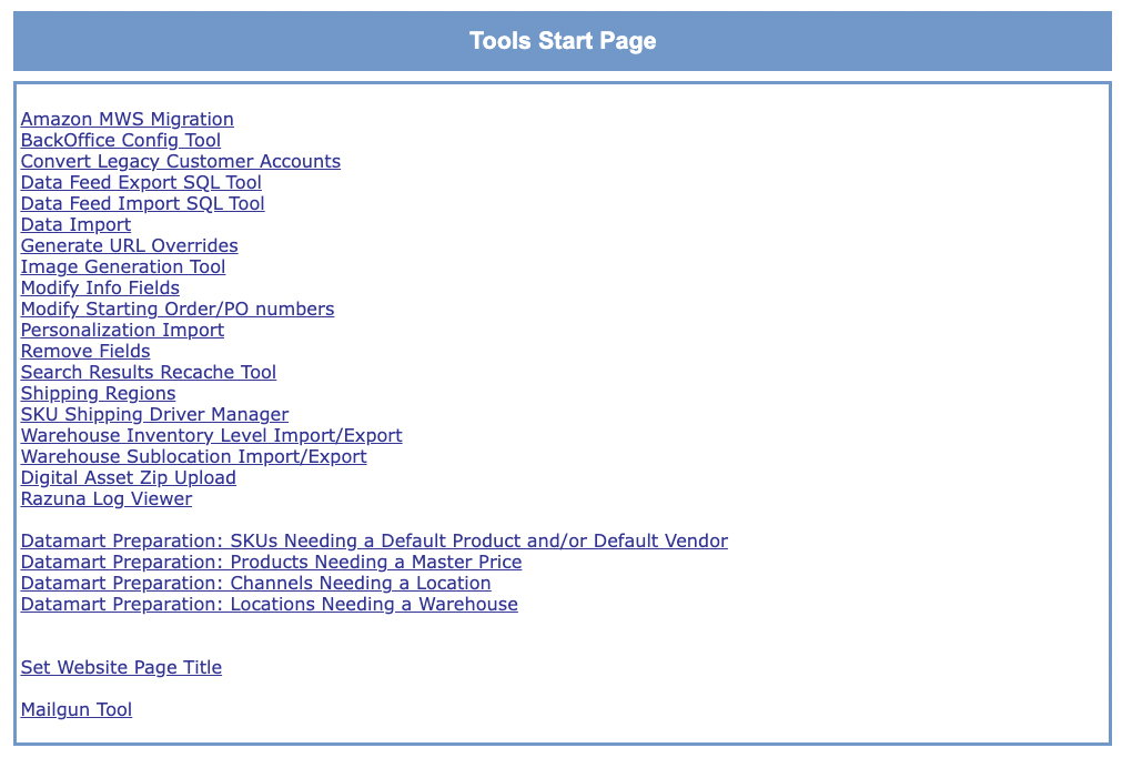 The Tools Start Page is a collection of administrator tools that should only be used by staff that understands how the tools impact your CORESense Back Office.
