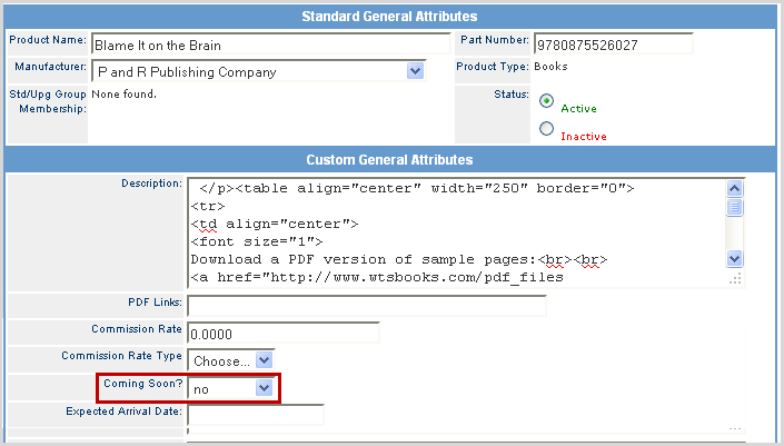 Product AttributeThe basic setup steps include: 1. Request a custom field in your Product Custom General Attributes to assign products for auto-population (i.e., Coming Soon = Yes or No).
